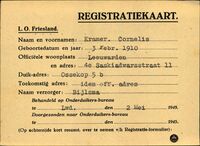 Onderduikregistratie van Cornelis Kramer