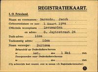 Onderduikregistratie van Jacob Barends