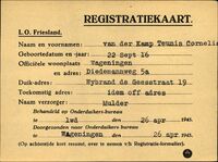 Onderduikregistratie van Teunis Cornelis van der Kamp