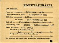 Onderduikregistratie van Aris Haverlag